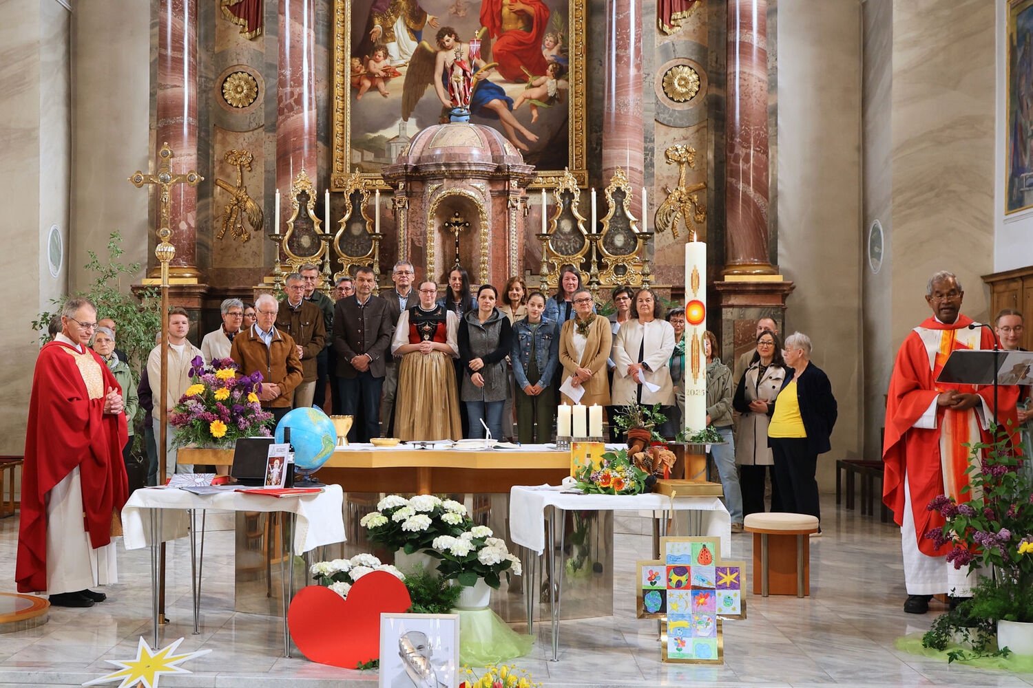 Ein besonderer Höhepunkt dieses Gottesdienstes war die Vorstellung der pfarrlichen Arbeitskreise mit Gabengang und Fürbitten, vorbereitet von Ilse Fraisl und Vikar Gerold Reichart. 25 Arbeitskreise mit über 150 Frauen, Männern, Jugendlichen und Kindern stellten sich vor – 150 lebendige Edelsteine! Sie sind die lebendigen Steine, die durch ihren unermüdlichen Einsatz, ihre Treue, ihre Zeit und ihre Liebe zur Pfarre diesem mächtigen Bauwerk in Satteins Leben einhauchen. Ohne diese Menschen gäbe es keine offene Tür, kein freundliches Willkommen, keine helfende Hand, keine lebendige Liturgie, keine Gemeinschaft, kein Miteinander, kein lebendiges Pfarrleben. Diese selbstlos engagierten Menschen geben dem Glauben in Satteins ein Gesicht, ein Herz, Hände und eine Stimme. Ohne diese vielen Ehrenamtlichen, die sich Tag für Tag, Jahr für Jahr, mit ihren Gaben und ihrer Zeit einbringen, wäre unsere Pfarre nicht das, was sie heute ist: lebendig, vielfältig und offen.