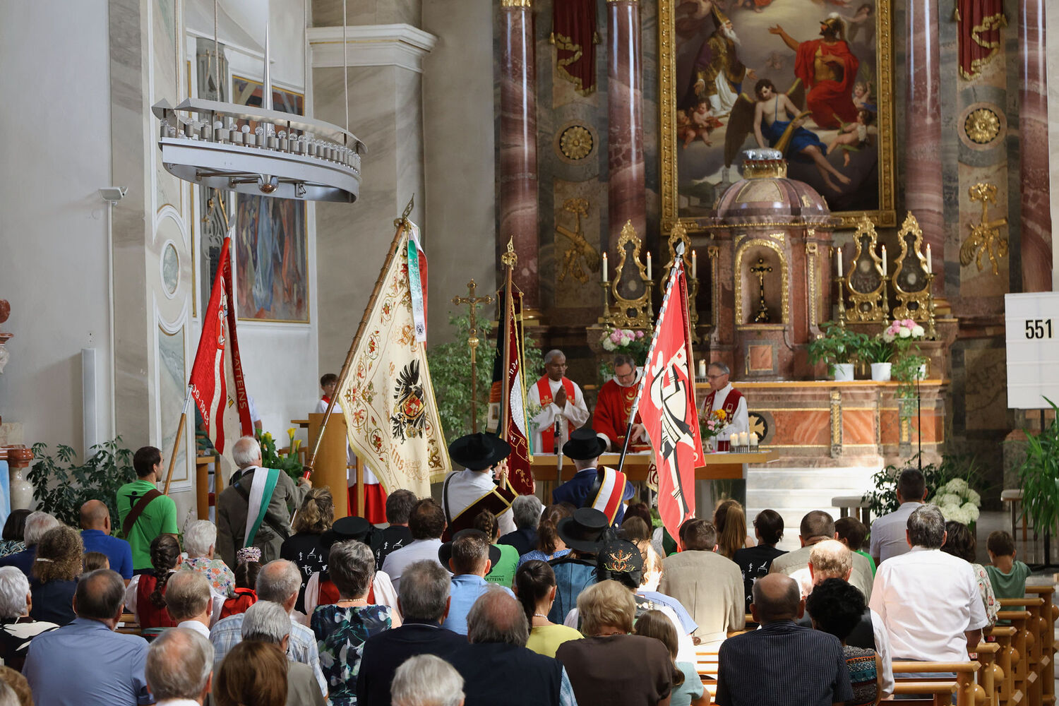 Die Messfeier wurde musikalisch vom Kirchenchor und den Bläsern des Musikvereins gestaltet. Hier gibt es eine Hörprobe.