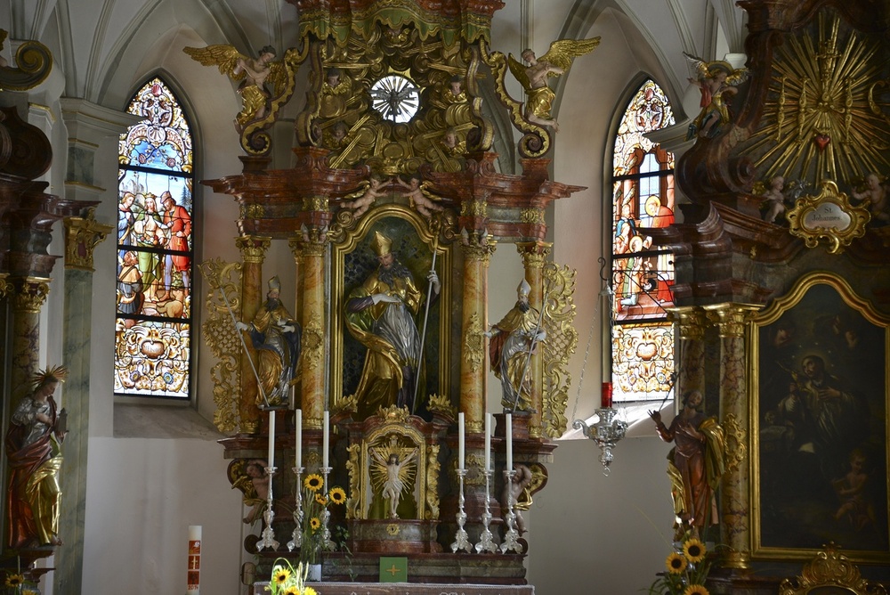 Langhaus: links hl. Anna mit Maria, hl. Michael, hl. Agnes, rechts. hll. Josef, Heinrich, Stanislaus