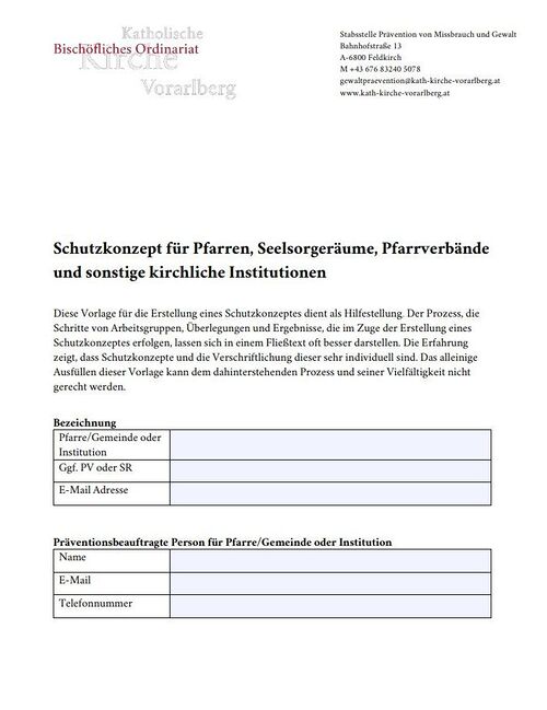 Leitfaden zur Erstellungen eines Schutzkonzepts für Pfarren