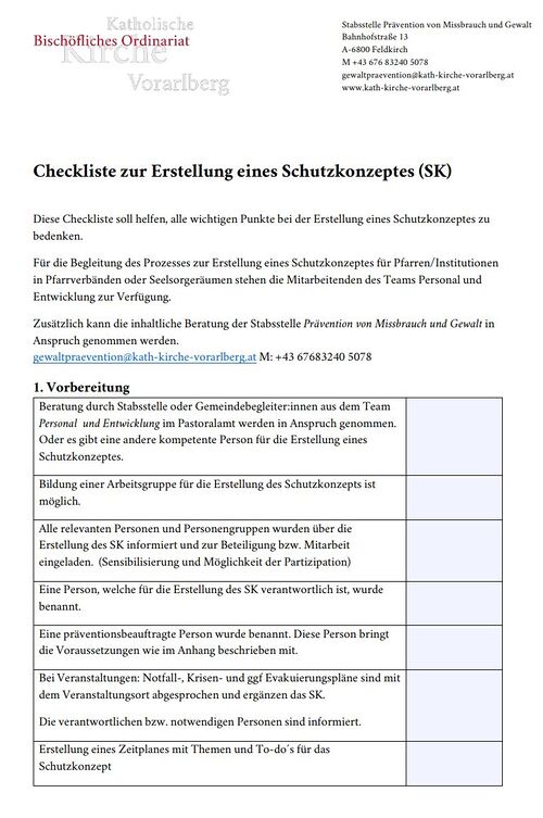 Checkliste zur Erstellung eines Schutzkonzeptes
